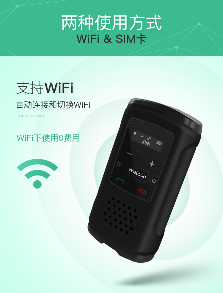 在任意地方,只要有网络就能连接使用(WiFi、2G、3G、4G。),可跨网,不限制运营商;